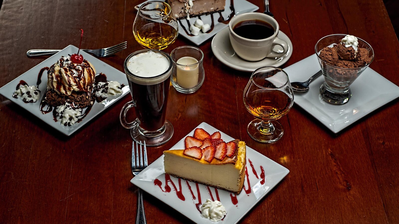 Brownie dessert topped with vanilla ice cream, chocolate syrup and whipped cream